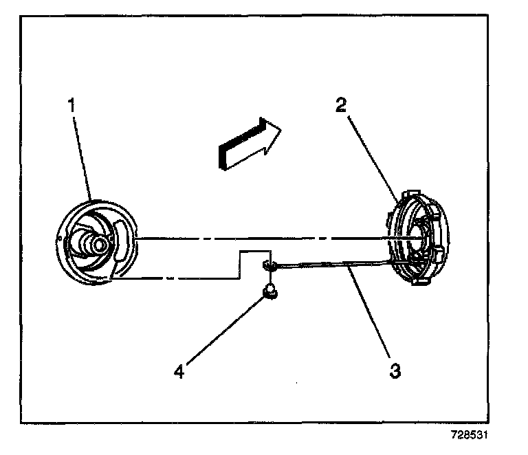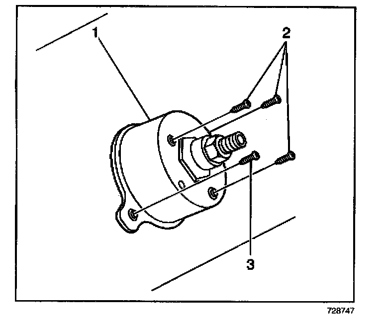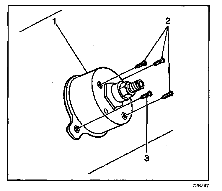 8. Remove the bolt (3) that secures the lower mounting cup (1) to the bumper.