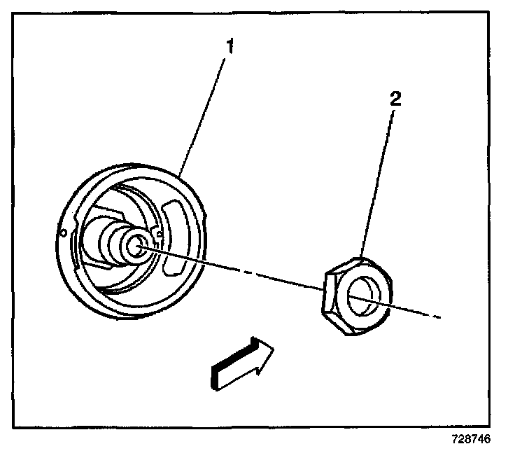 7. Remove the three bolts (2) that secure the two mounting cup halves together.
