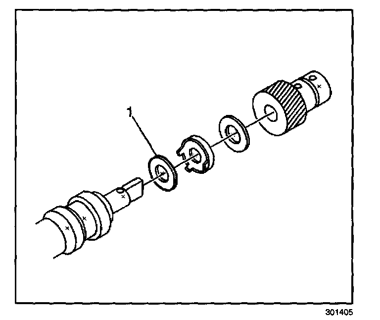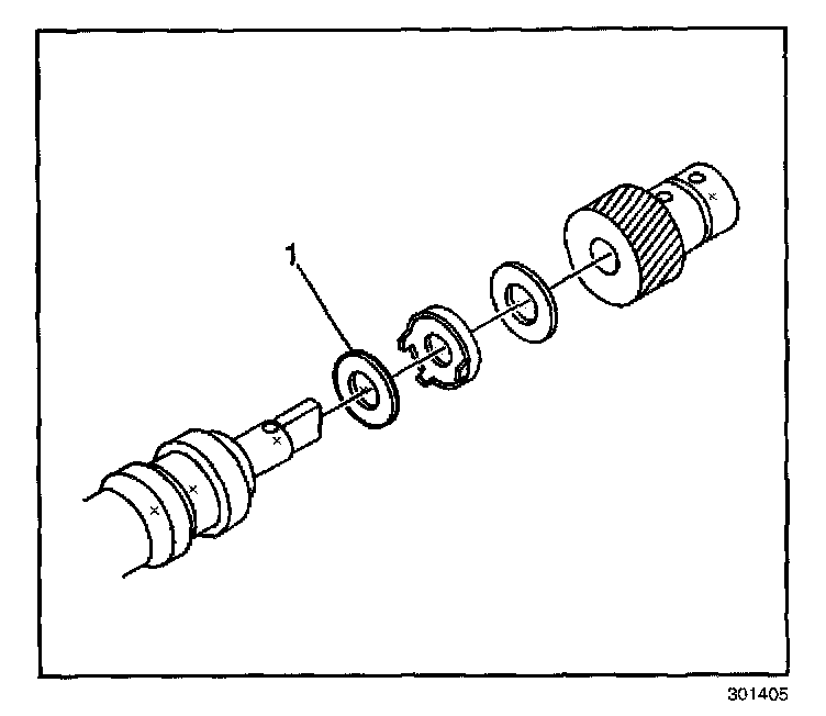 16. Remove the shim washer (1).