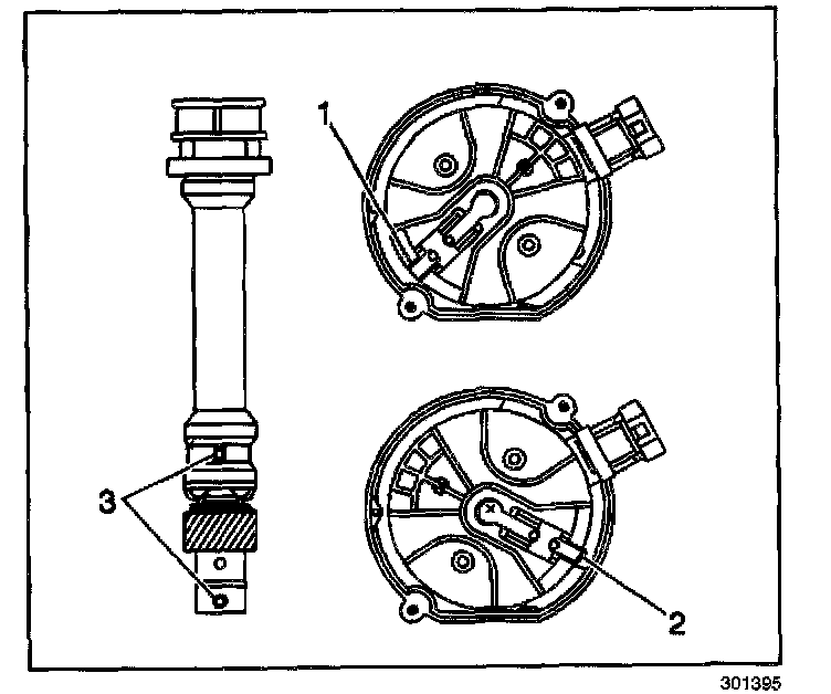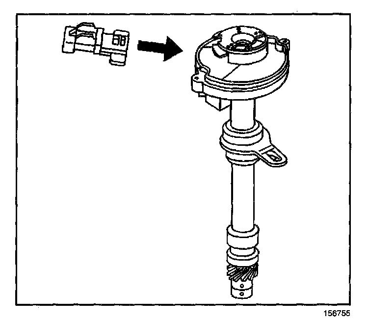 NOTE: The ignition system distributor driven gear and rotor may be installed in multiple positions. In order to avoid mistakes, mark the distributor on the following components in order to ensure the same mounting position upon reassembly: