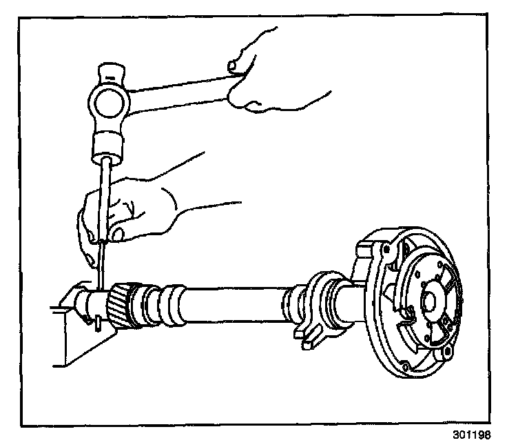 13. Support the distributor drive gear in a V-block or a similar fixture.