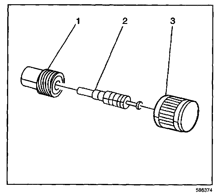 1. Use a standard valve core tool in order to install a new valve core (2).