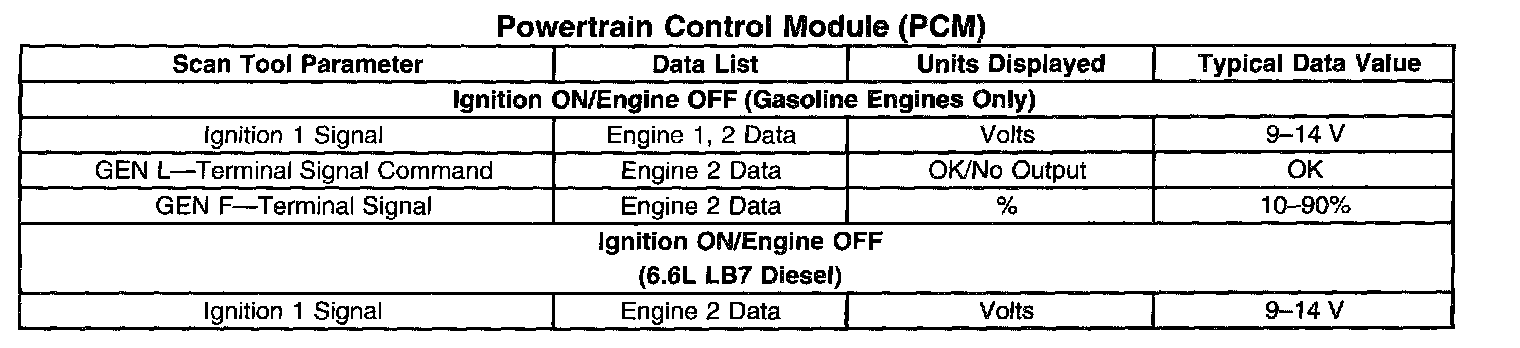 Scan Tool Data List - Powertrain Control Module (PCM)