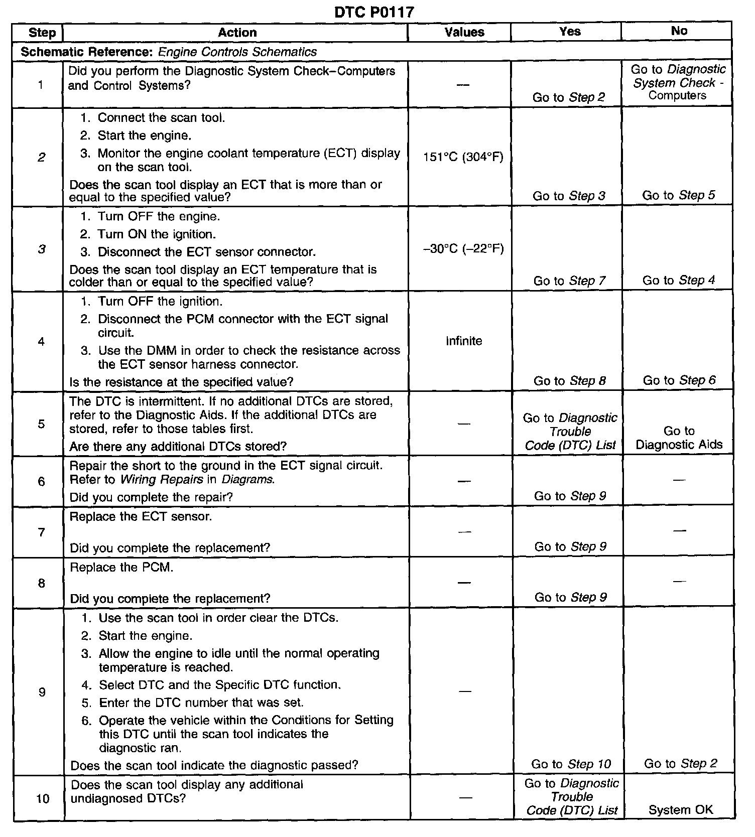 3. This test simulates a DTC P0117. If the PCM recognizes the high signal voltage, indicating a low temperature, the PCM and the wiring are okay.