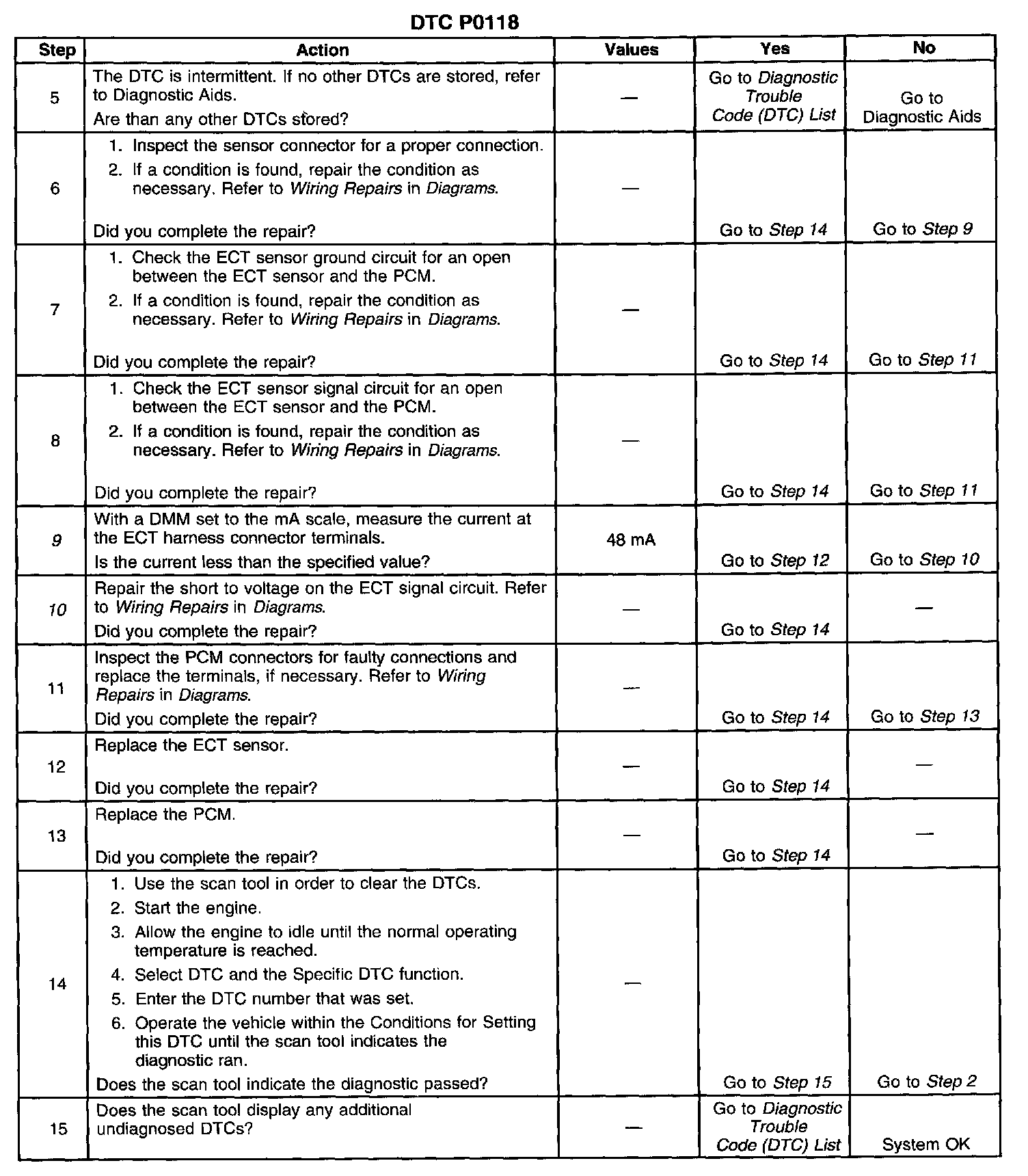 2. This step determines if DTC P0118 is a hard failure or an intermittent condition.