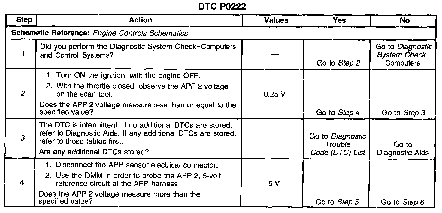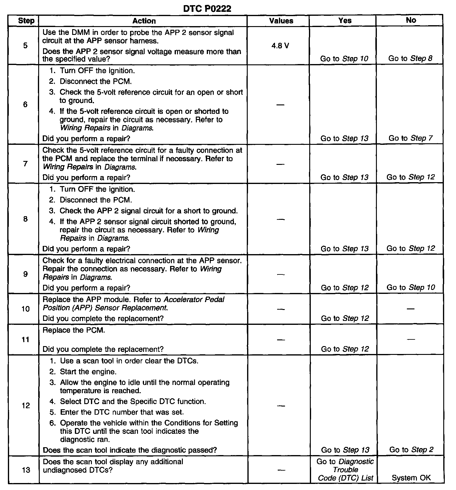 2. This step determines if DTC P0222 is the result of a hard failure or an intermittent condition.