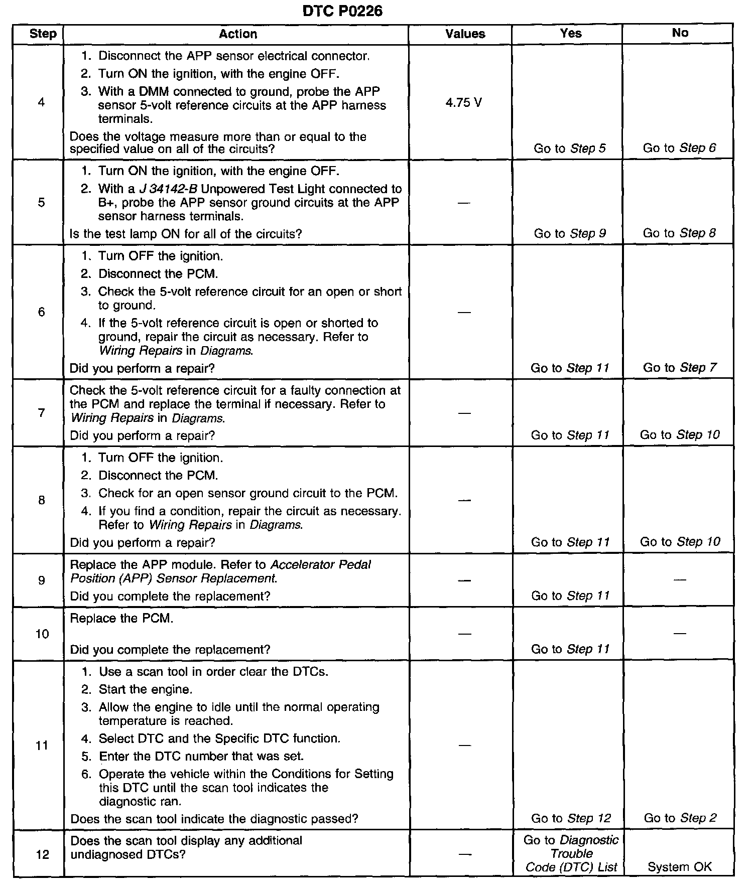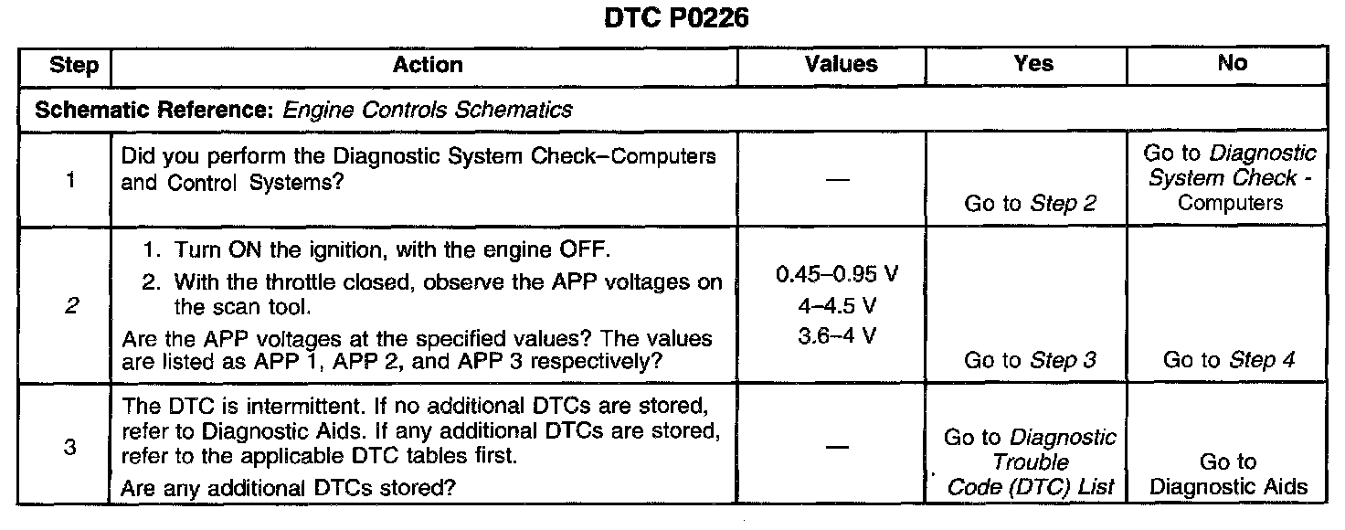 ^ The difference between APP 3 and APP 1 is more than 0.23 volts-The PCM compares the pre-scaled voltage that is internal to the PCM.