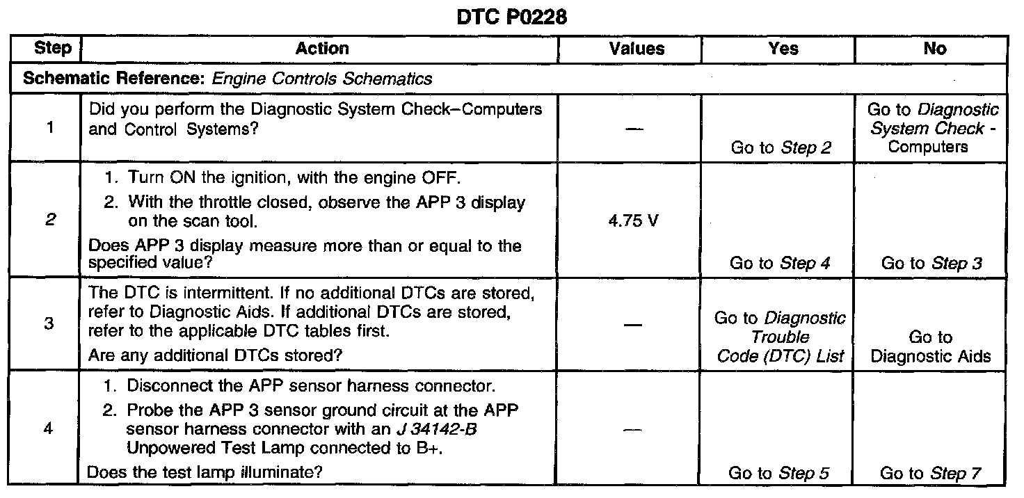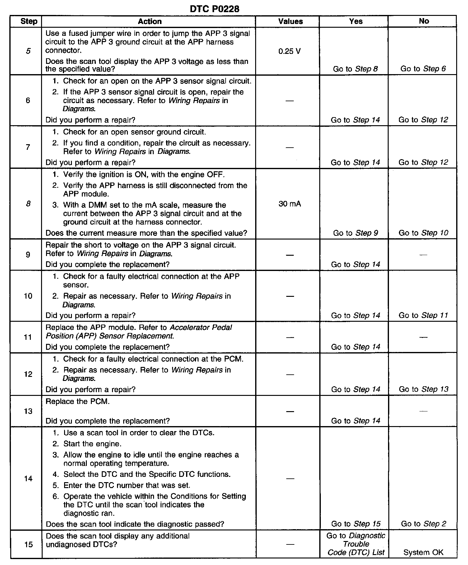 2. This step determines if DTC P0228 is a hard failure or an intermittent condition.