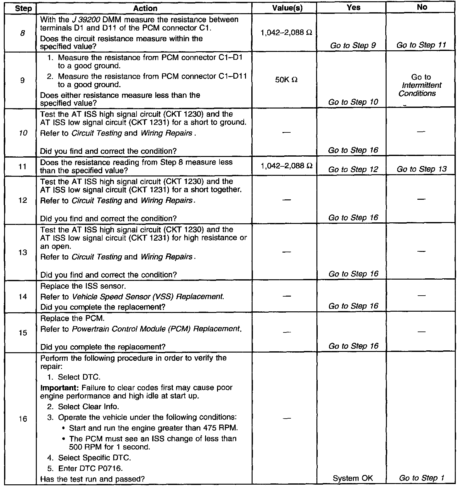 When the PCM detects an unrealistically large change in input speed, then DTC P0716 sets. DTC P0716 is a type B DTC.