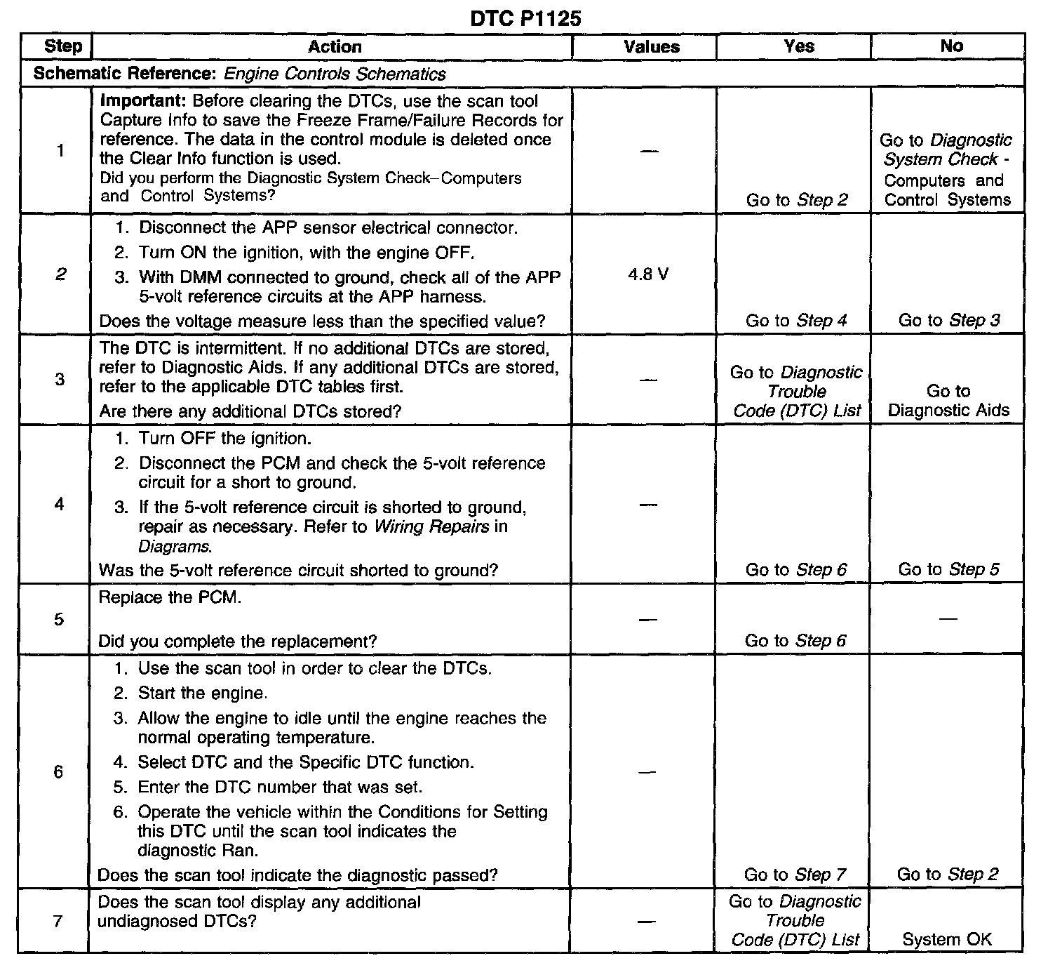 2. This step determines if DTC P1125 is a hard failure or an intermittent condition.