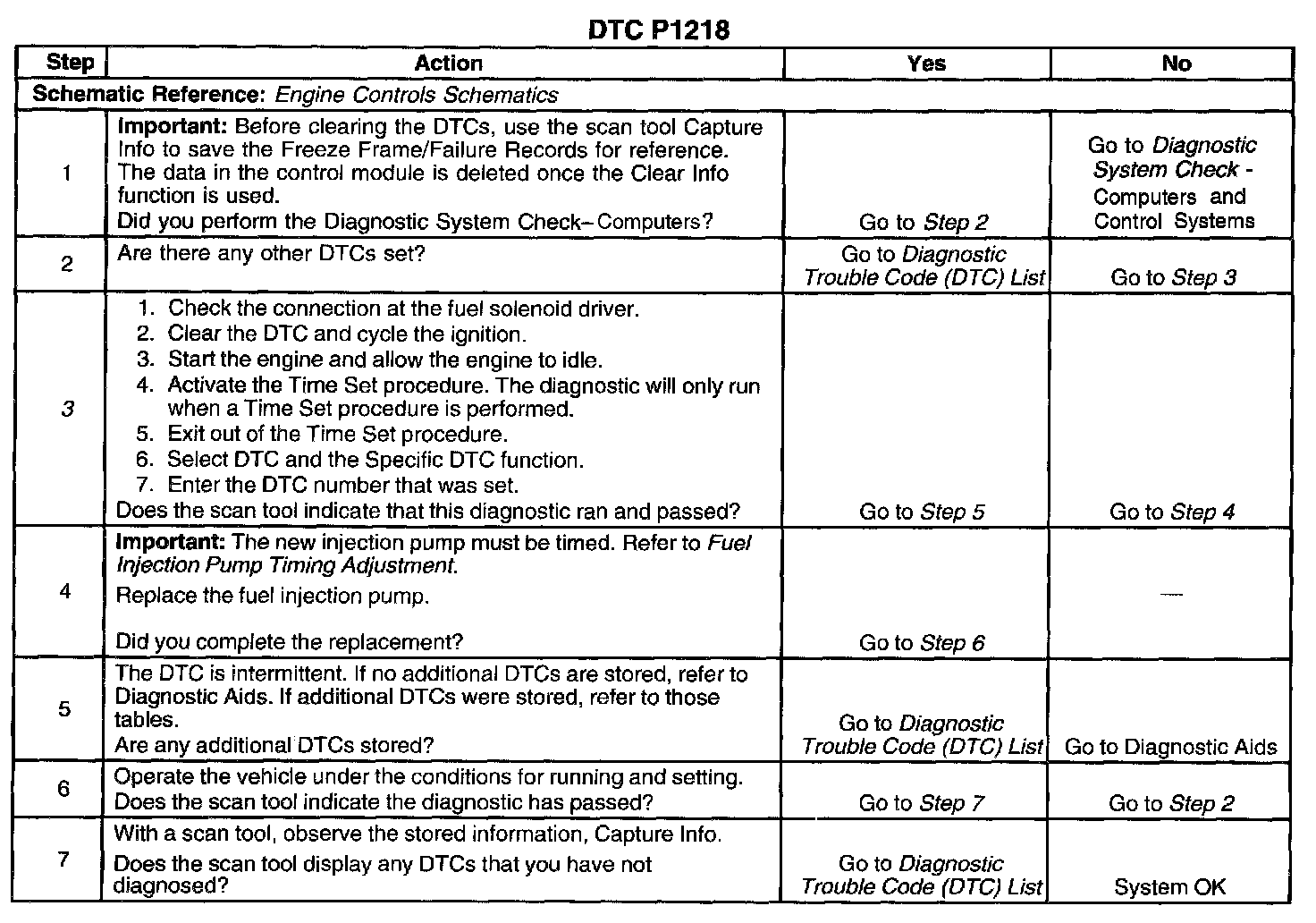 The number below refers to the step number on the diagnostic table.
