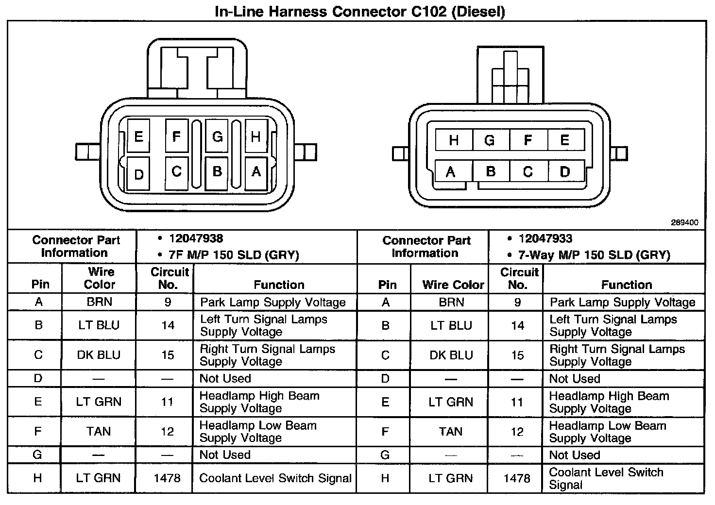 In-Line Harness Connector C102: