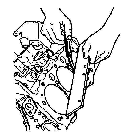 12. Inspect the engine block to cylinder head gasket surface area for warping. Use a straight edge and feeler gauge. Replace the block if it is warped more than 0.15 mm (0.006 inch) longitudinally or more than 0.08 mm (0.003 inch) transversely.