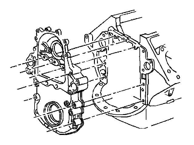12. Remove the bolts retaining the oil pan to the engine front cover.