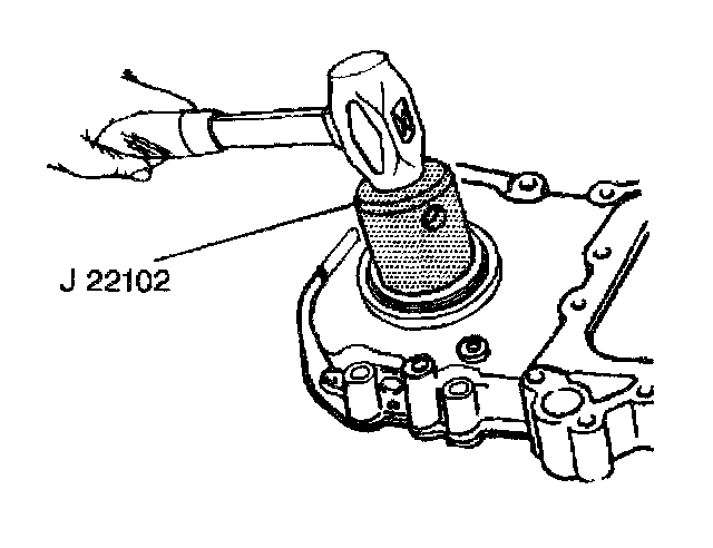 1. Use the J 22102 to install the new front crankshaft front oil seal.