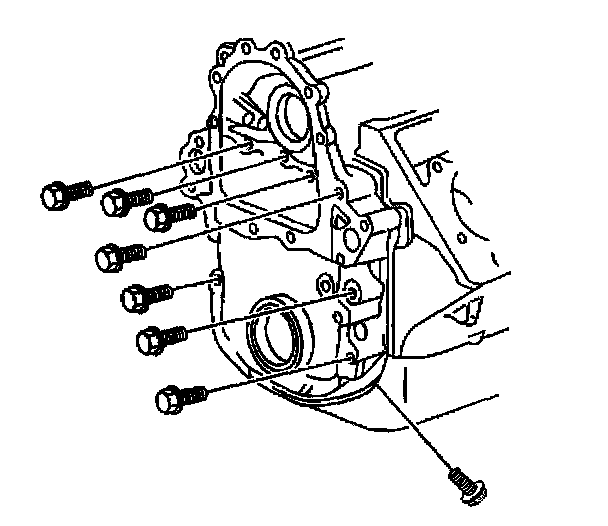 11. Remove the bolts from the front of the engine front cover.