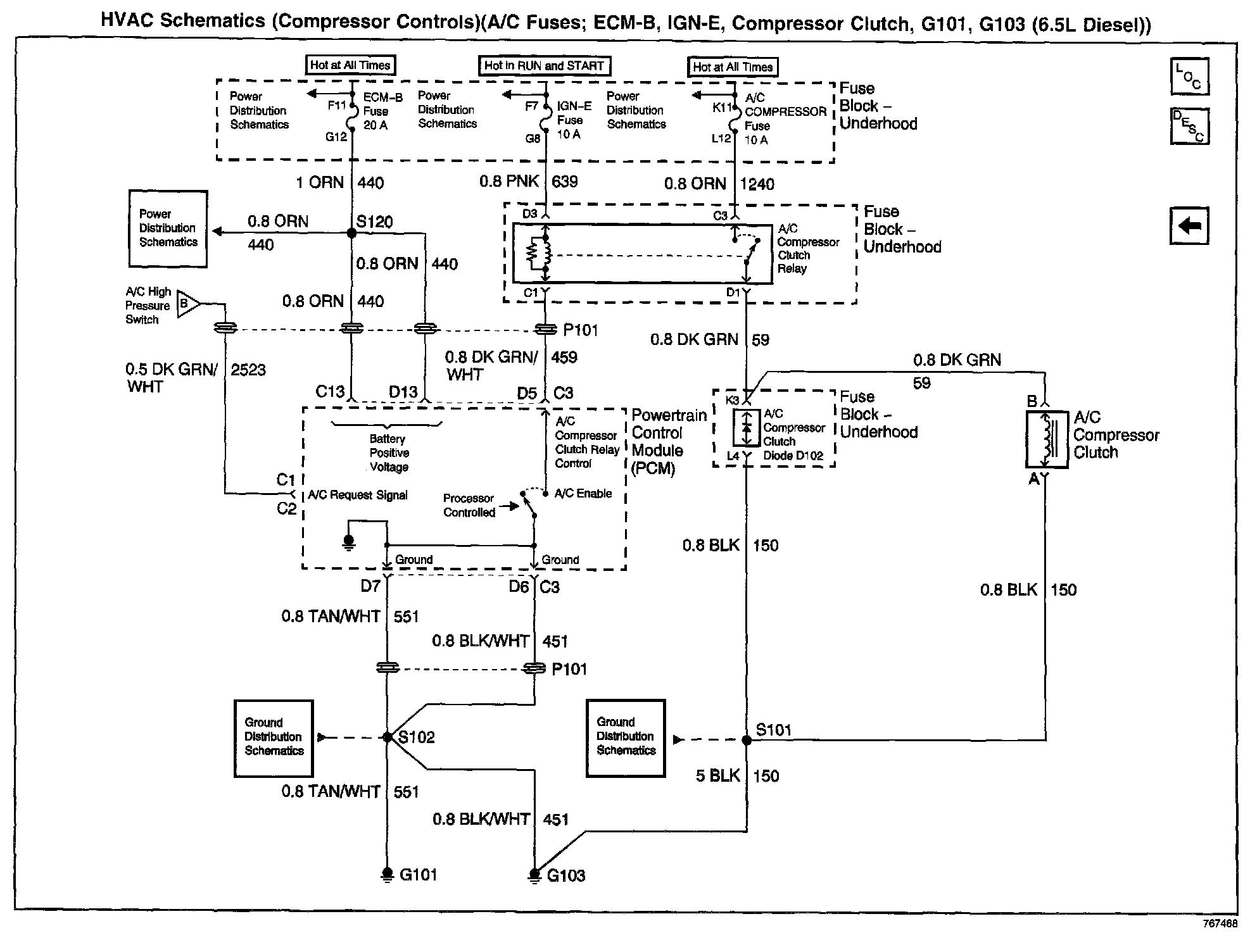 HVAC Schematics: Compressor Controls (A/C Fuses; ECM-B, IGN-E, Compressor Clutch, G101, G103):