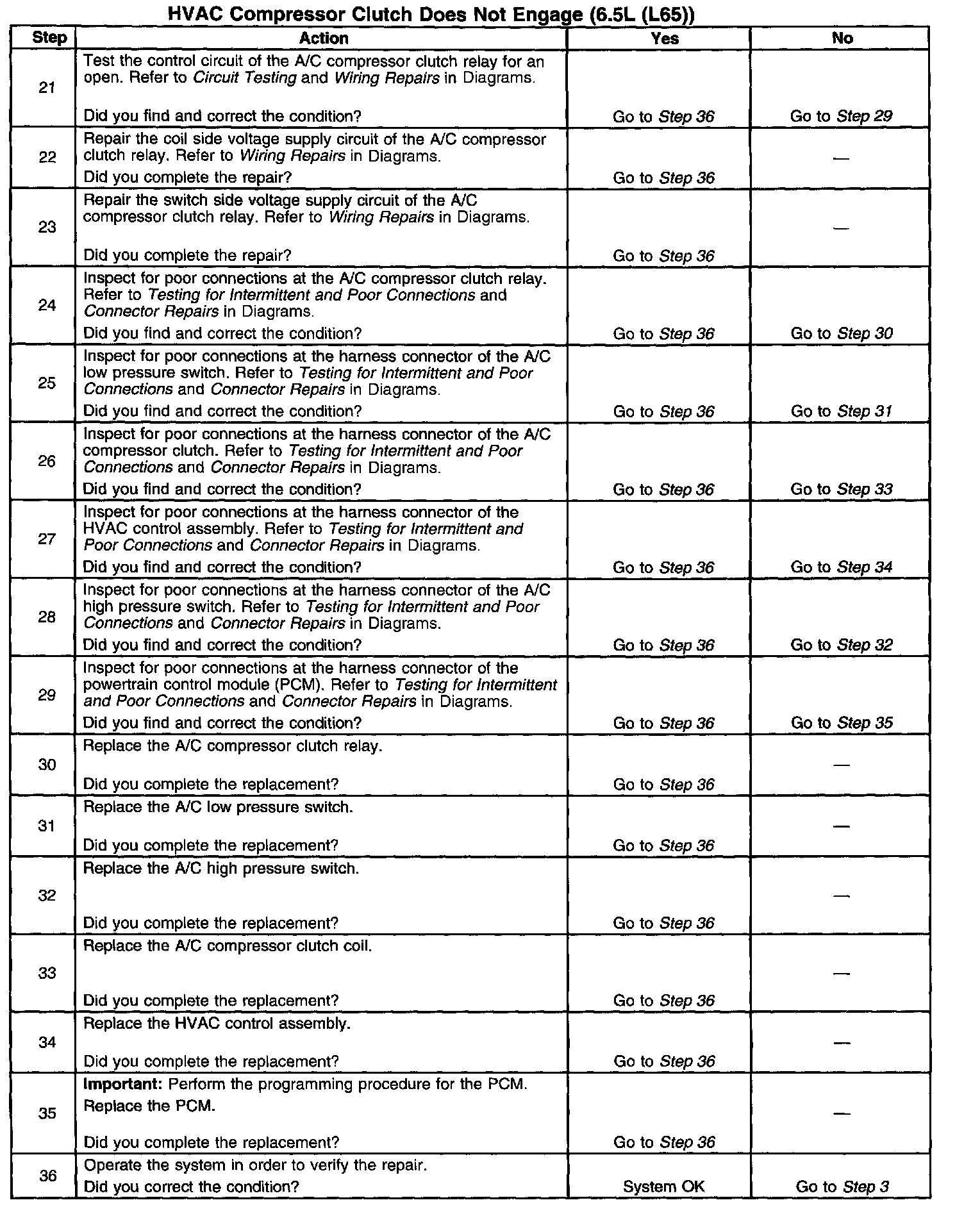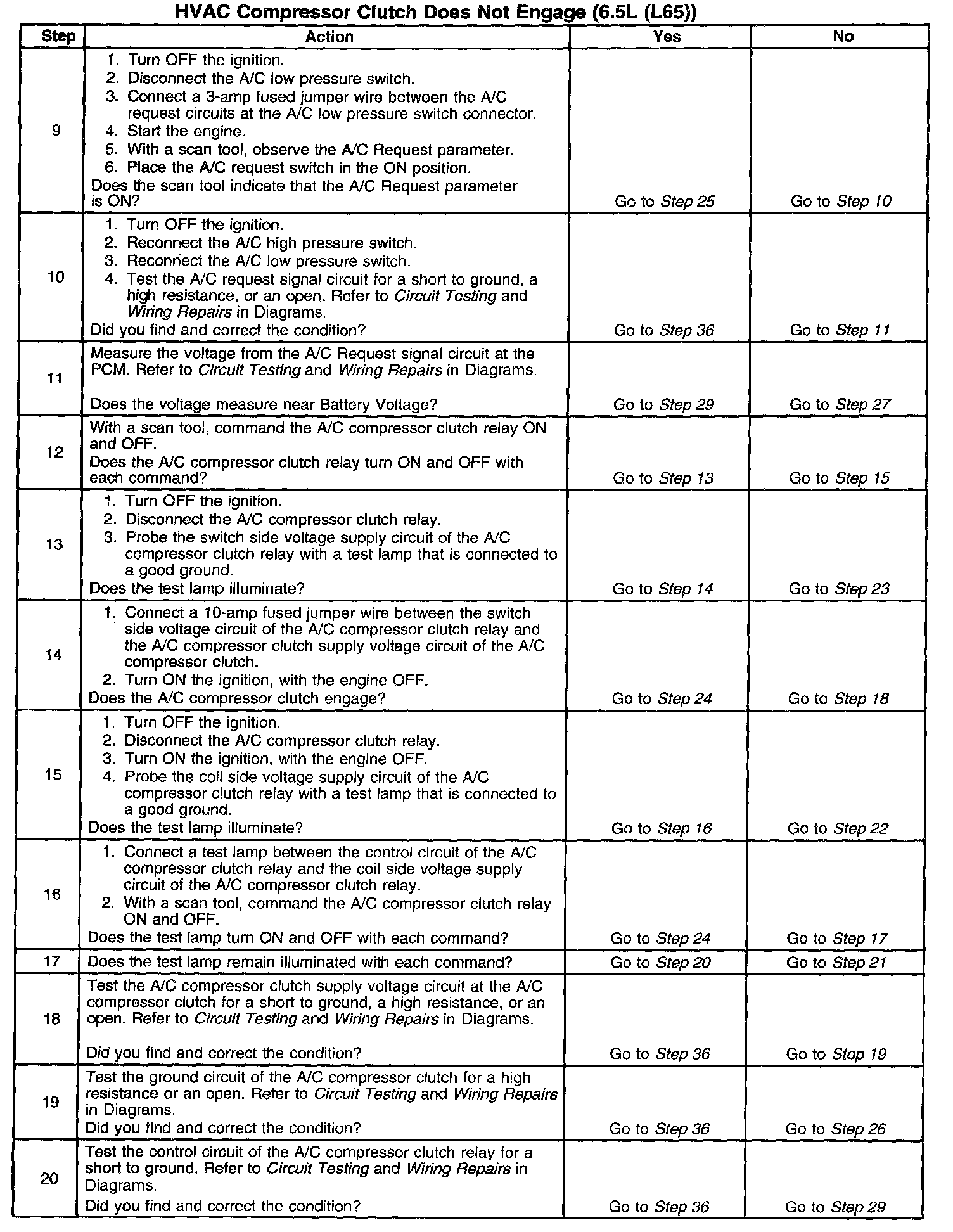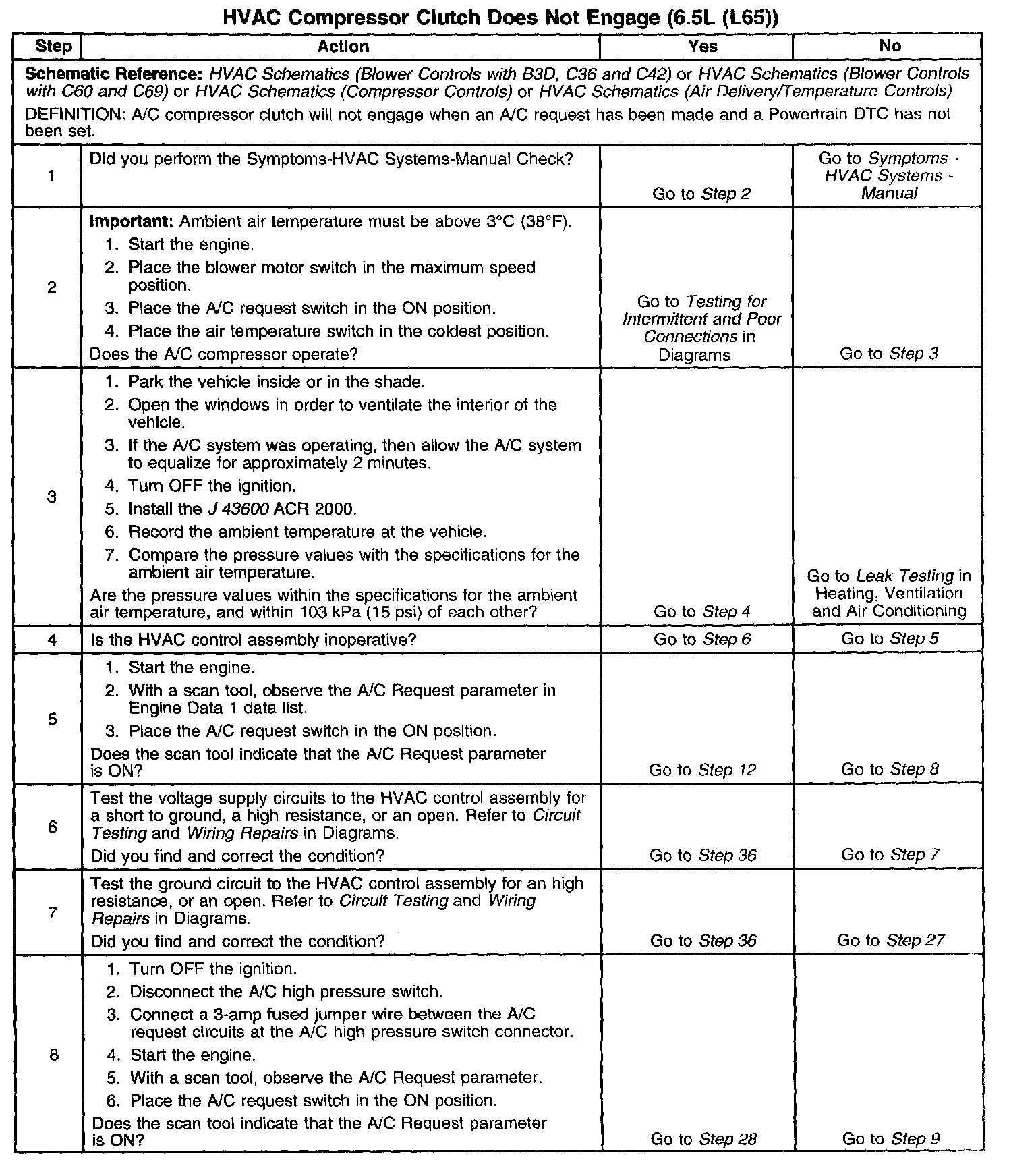 The number(s) below refer to the step number(s) on the diagnostic table.