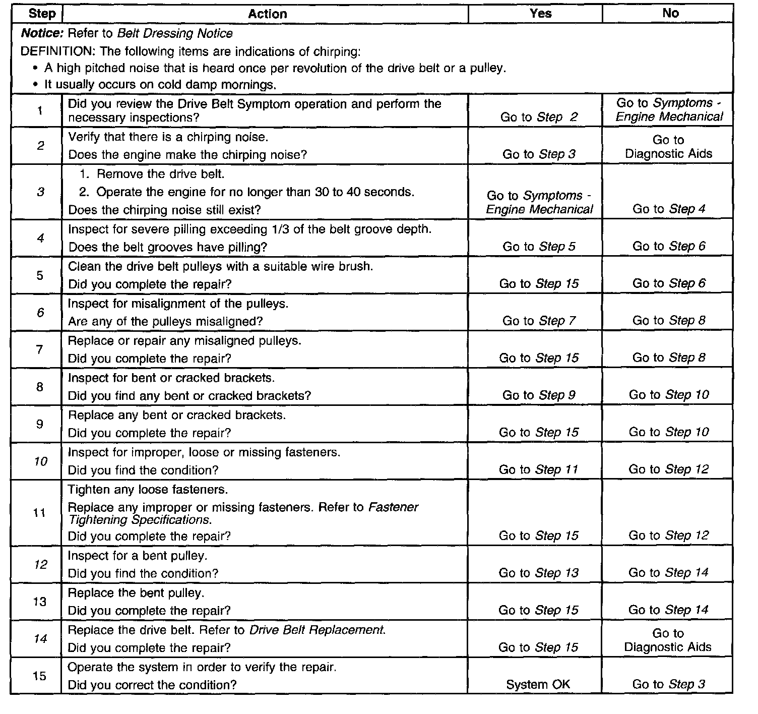 Drive Belt Chirping DiagnosisDiagnostic Aids