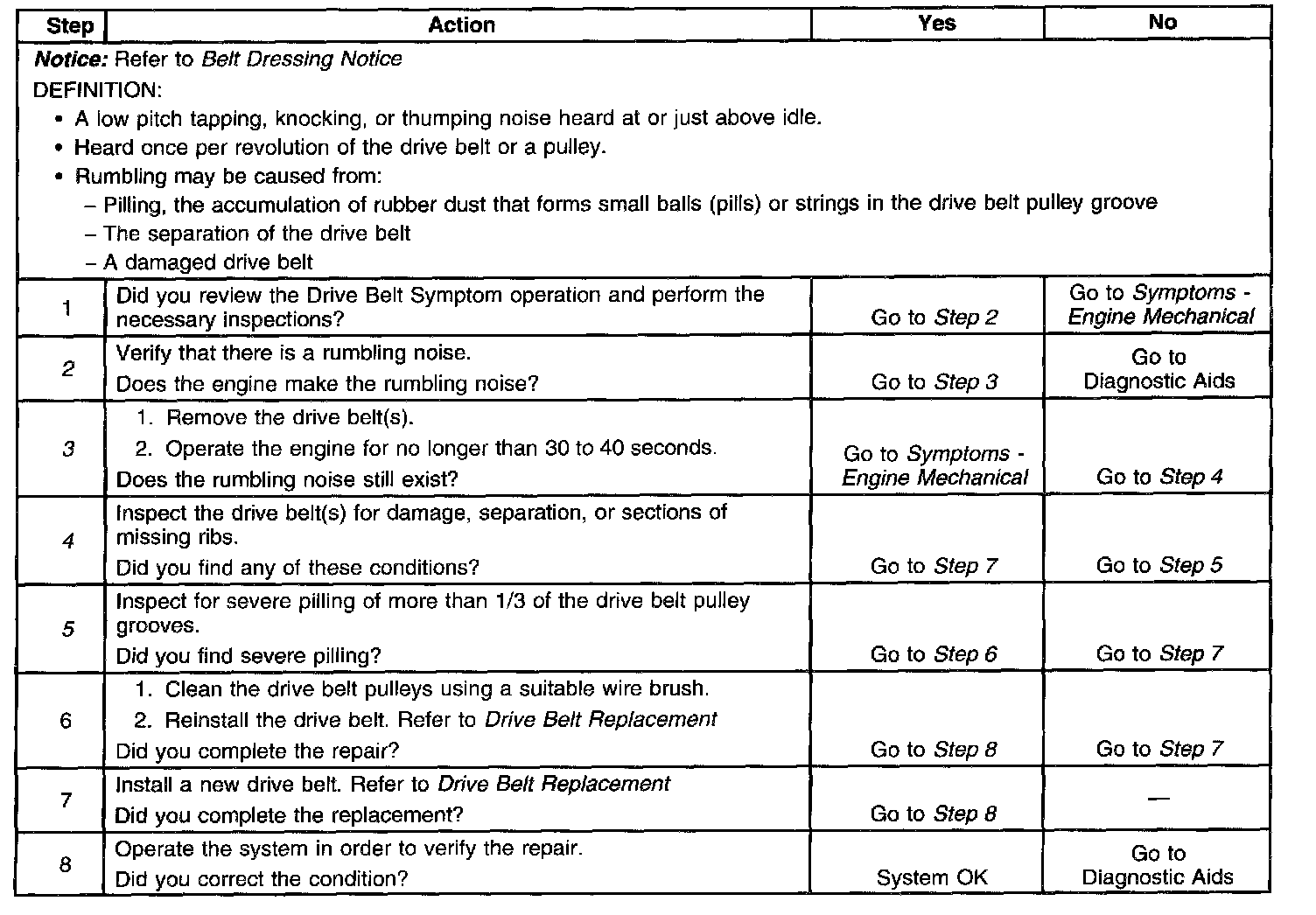Drive Belt Rumbling DiagnosisDiagnostic Aids