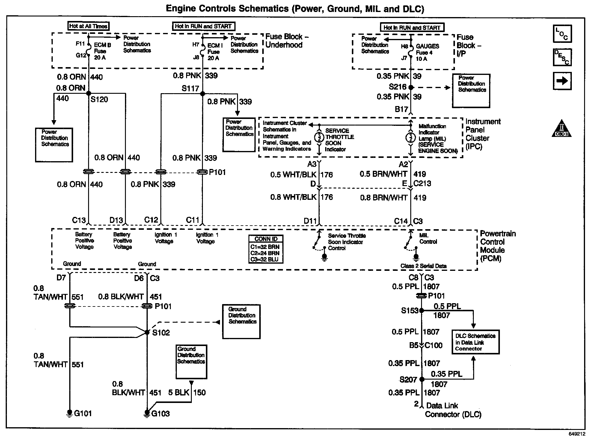 Engine Controls Schematics: Power, Ground, MIL And DLC: