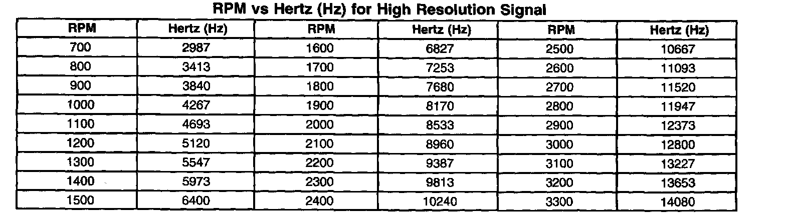 RPM Vs Hertz (Hz) For High Resolution Signal: