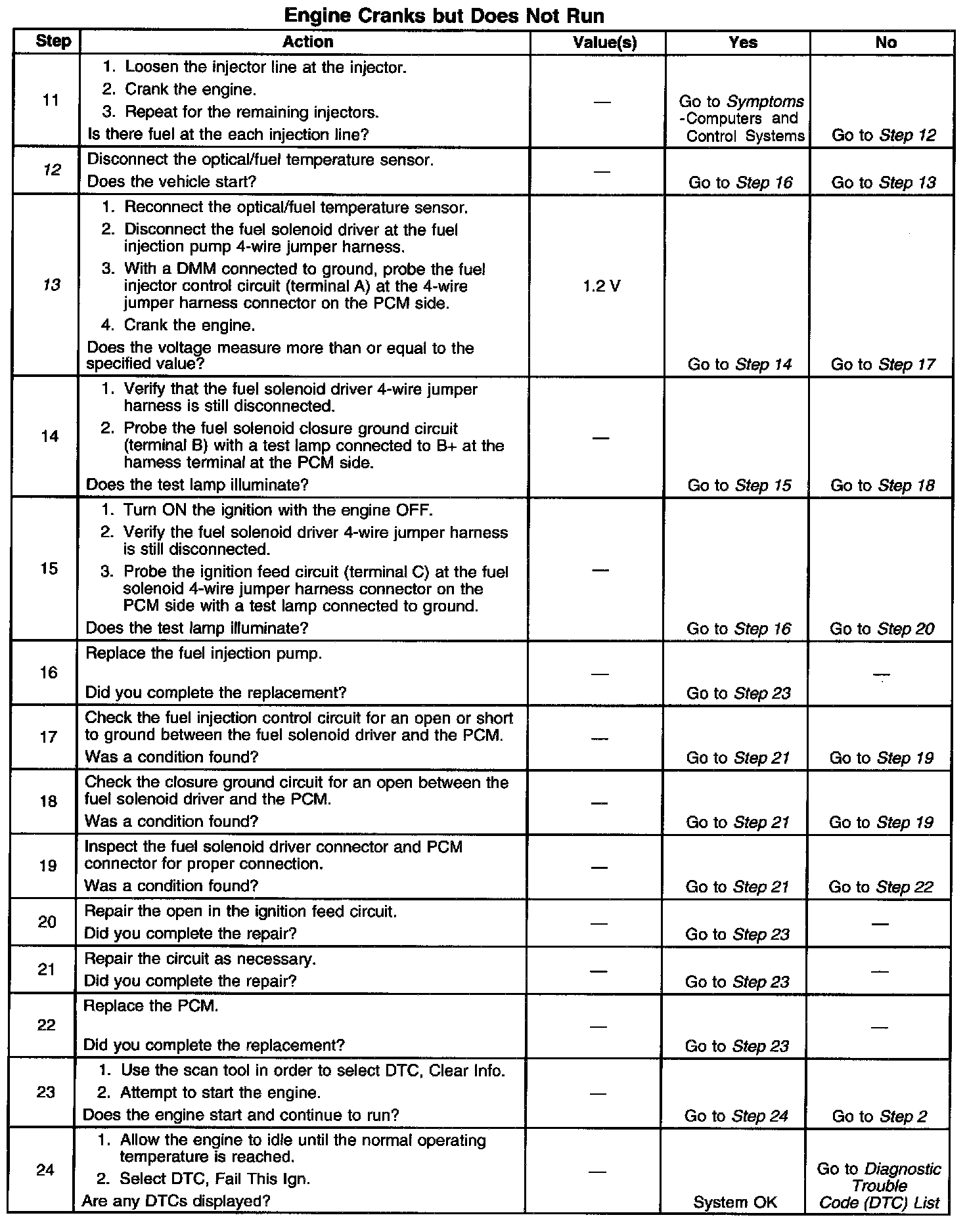 CIRCUIT DESCRIPTIONThis table verifies that all basic engine systems are operating properly. This includes the battery condition, the engine cranking speed, the glow plugs, and the fuel delivery system.