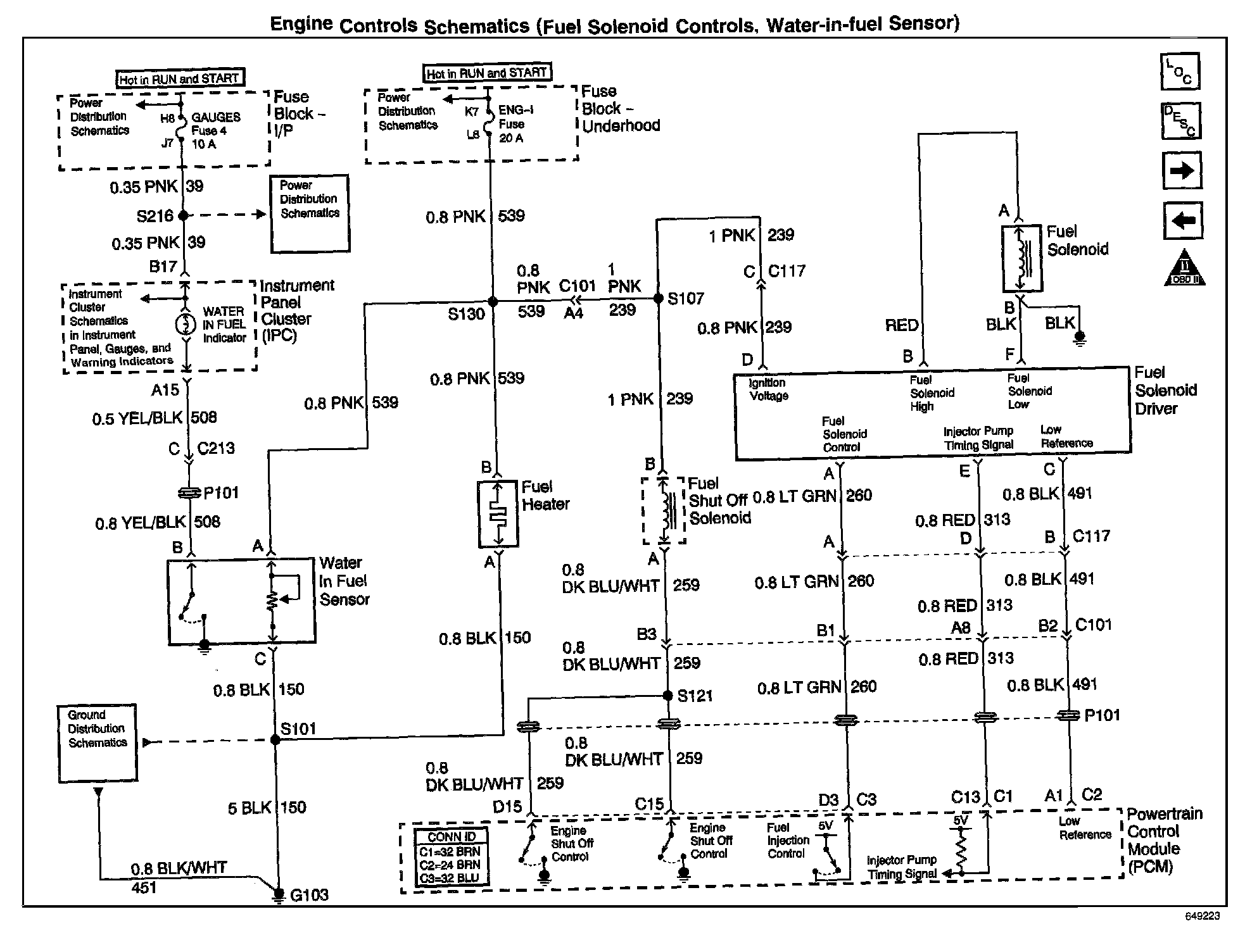 Engine Controls Schematics: Fuel Solenoid Controls, Water-in-fuel Sensor: