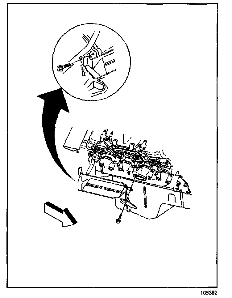 6. Remove the bolt retaining the starter motor bracket to the engine.