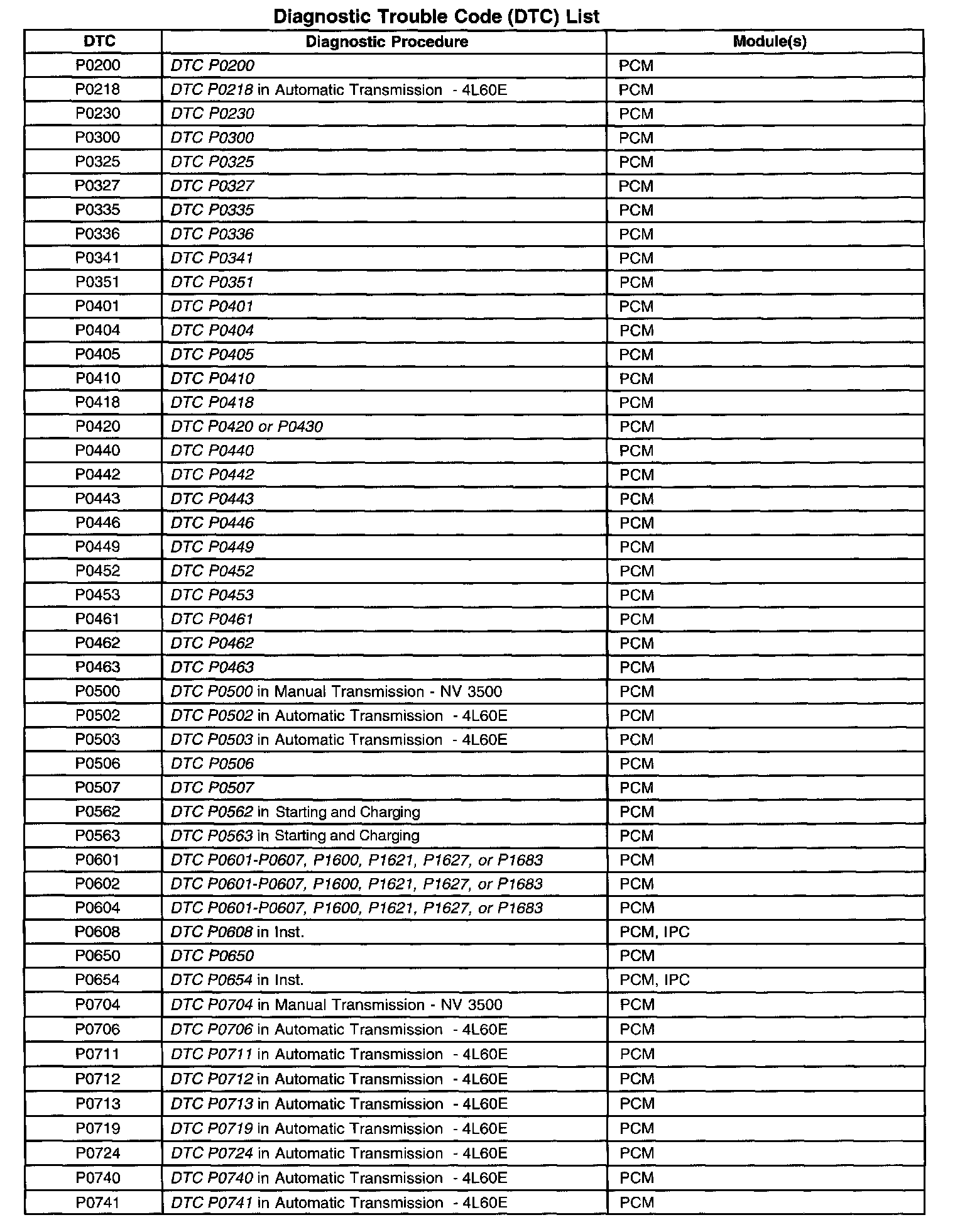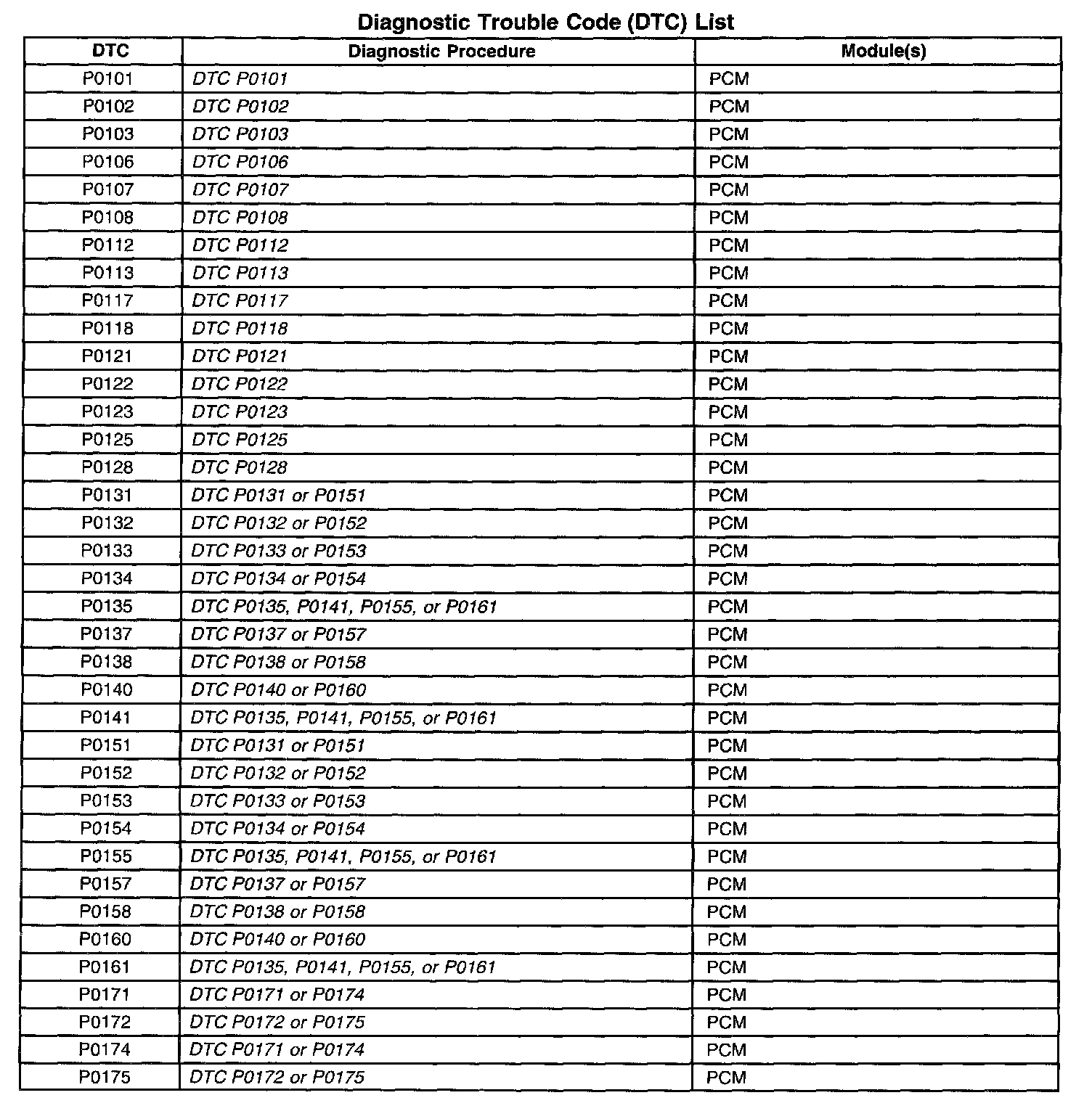 Diagnostic Trouble Code (DTC) List (Part 1 Of 3):