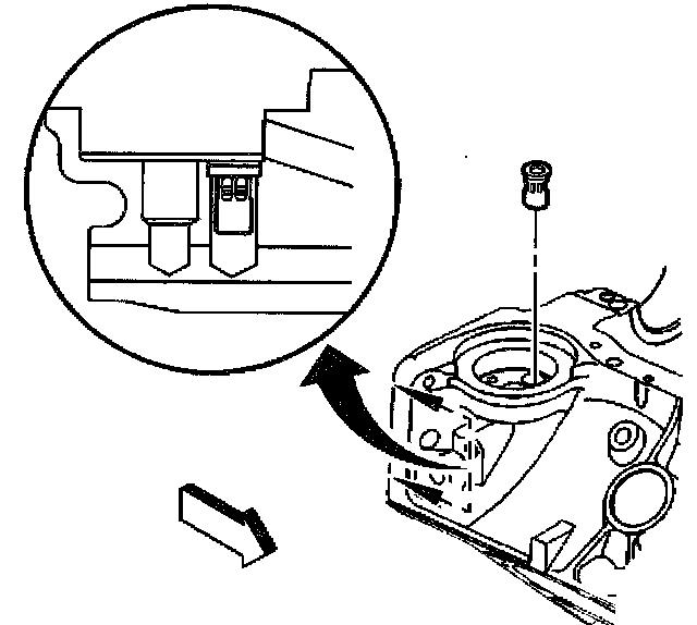 1.1. Install the oil filter bypass valve into the oil gallery bore until slightly below flush with the surface of the engine block.