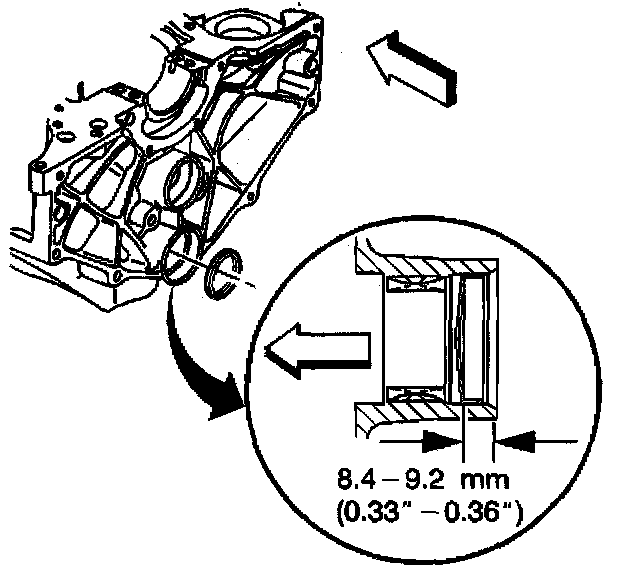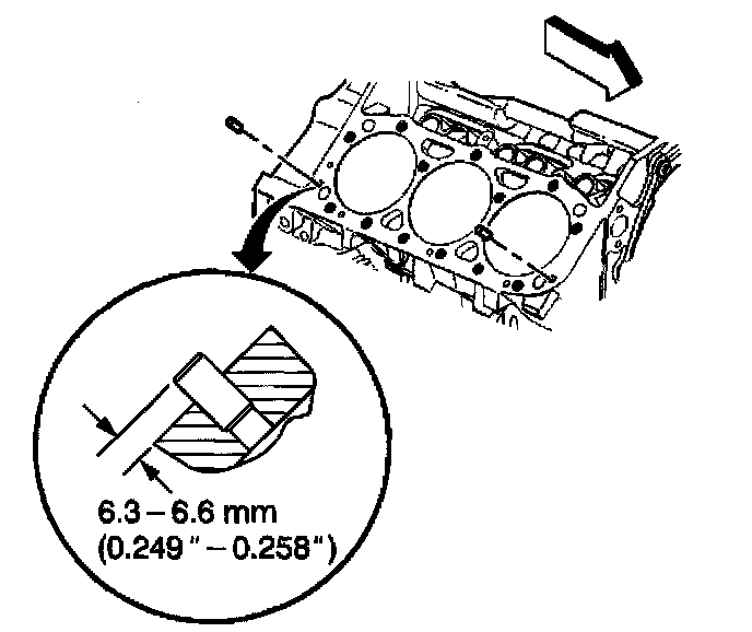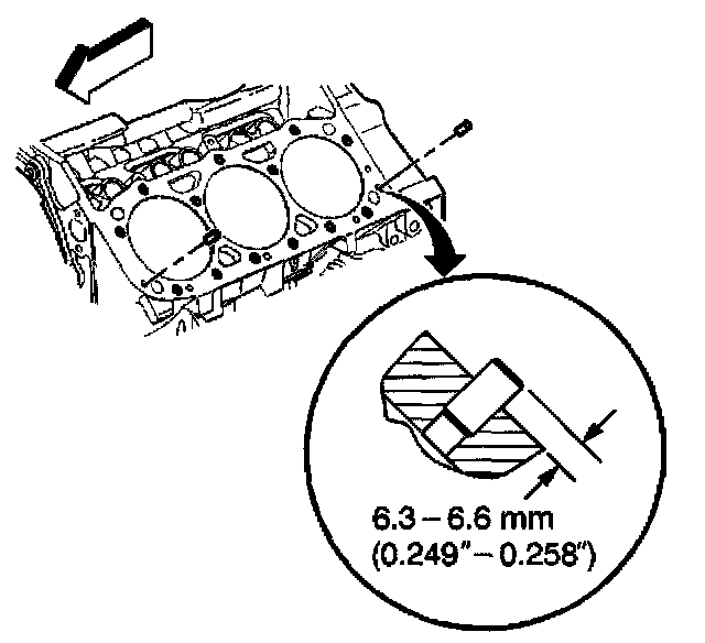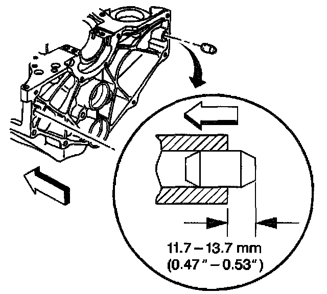 3. Install the NEW front engine block oil gallery plugs. A properly installed front engine oil gallery plug must be installed slightly below flush with the front face of the engine block.