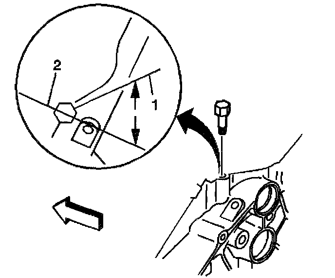 20. Rotate the engine oil pressure sensor fitting clockwise to the proper position (1), 50 degrees from the centerline (2).