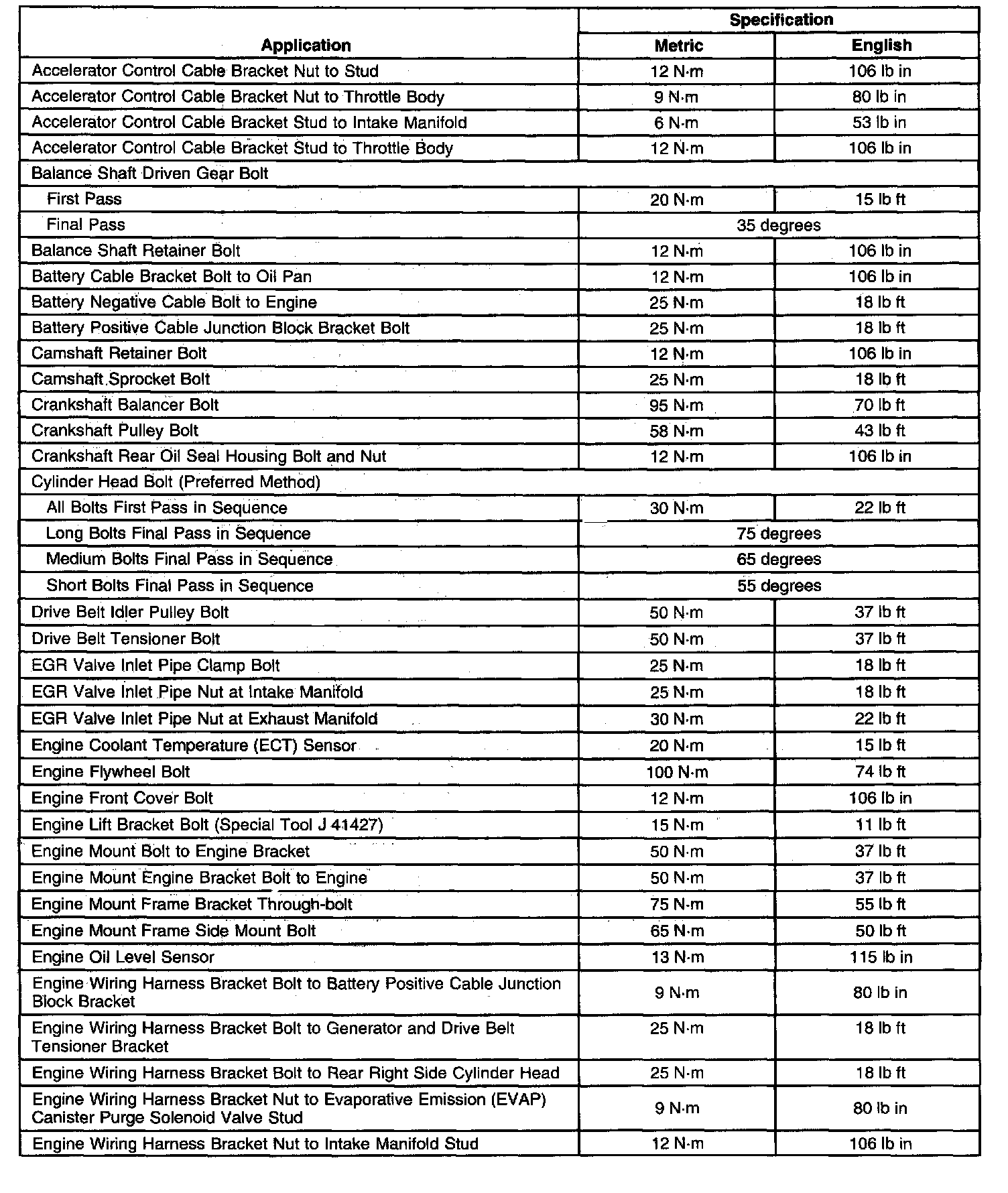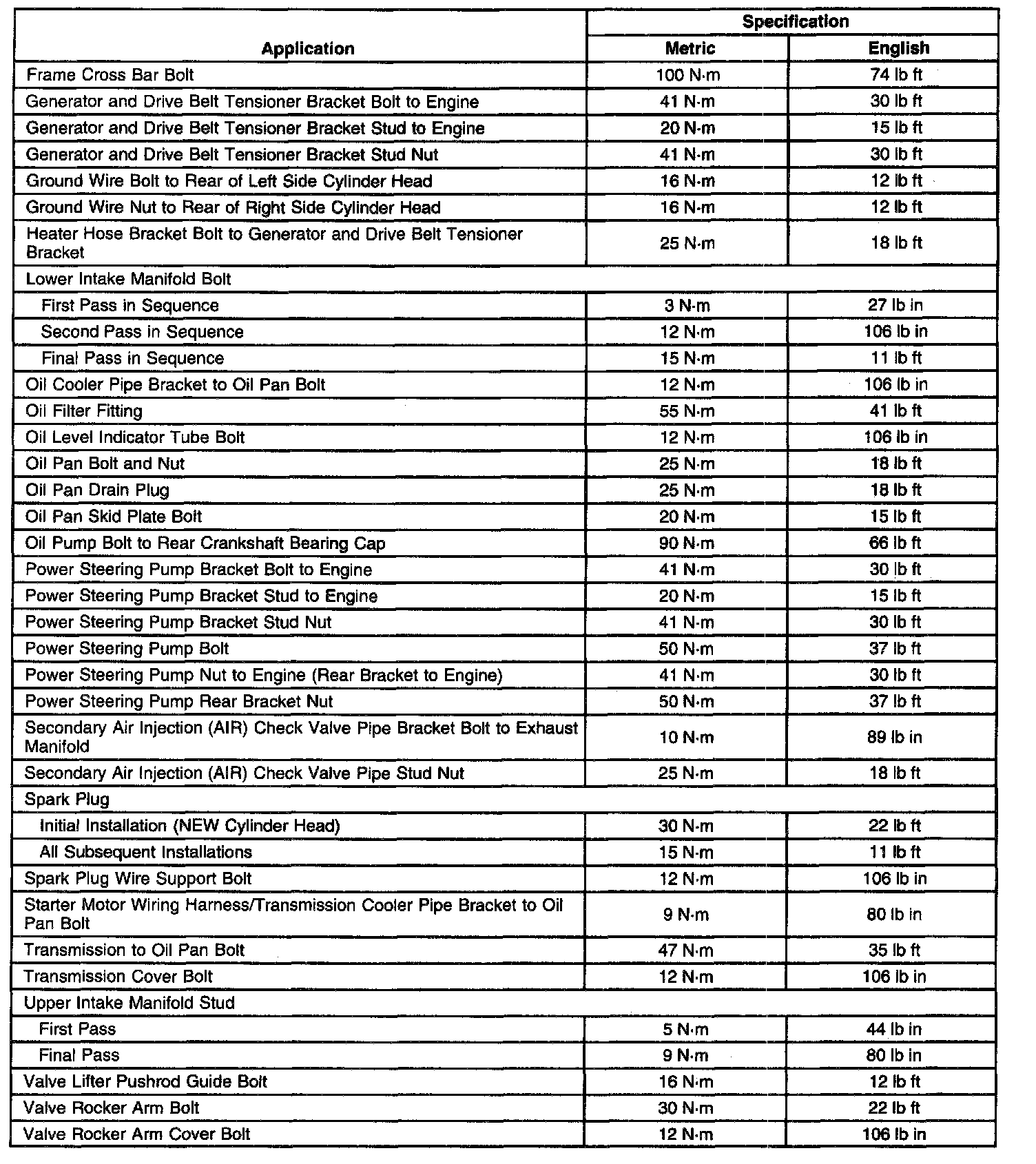 Fastener Tightening Specifications