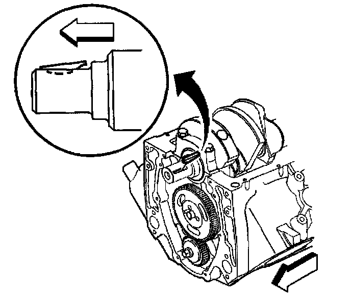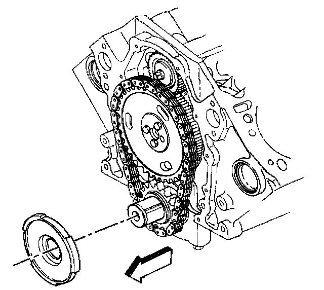 Important: Do not use a hammer to install the camshaft sprocket onto the camshaft. To do so may dislodge the expansion cup plug (camshaft rear bearing hole).