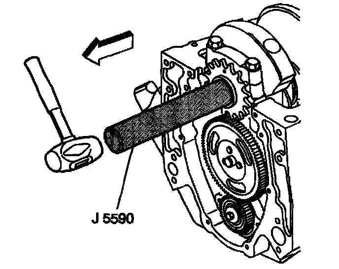 3. Use the J 5590 in order to install the crankshaft sprocket.