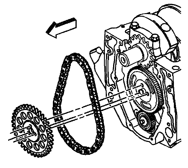 Notice: Align the timing marks before removing the timing chain. If it is necessary to turn either the camshaft or the crankshaft with the timing chain removed, loosen or remove the valve rocker arms. Turning either the crankshaft or camshaft with the timing chain removed may cause the pistons to contact the valves, resulting in damage.