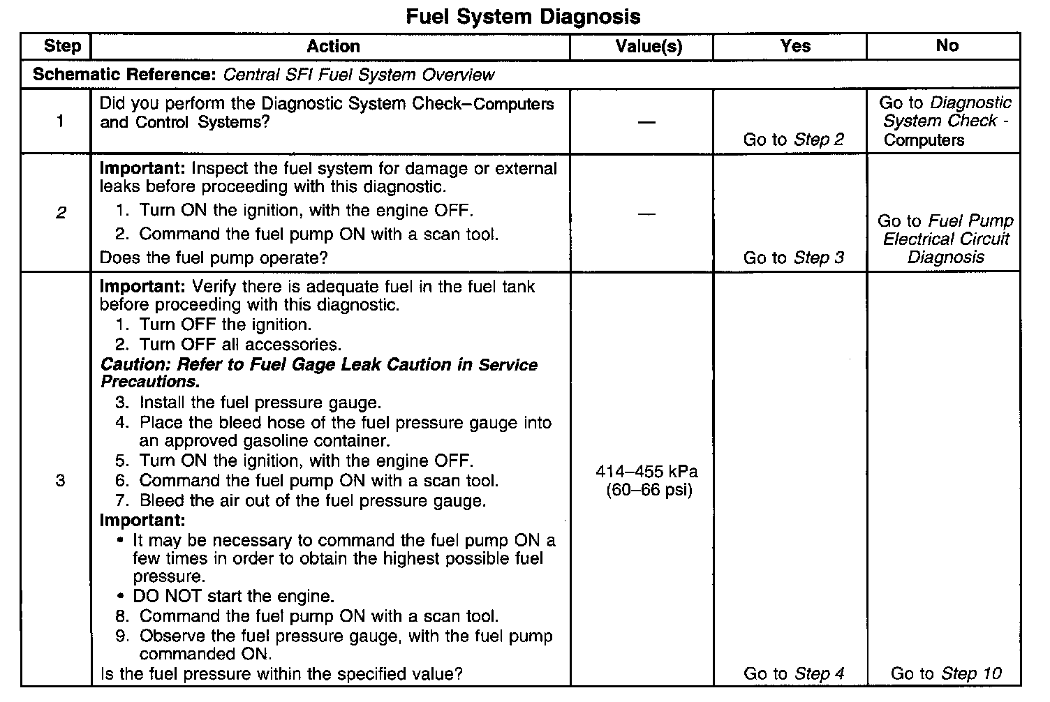 FUEL SYSTEM DIAGNOSISSteps 1-3: