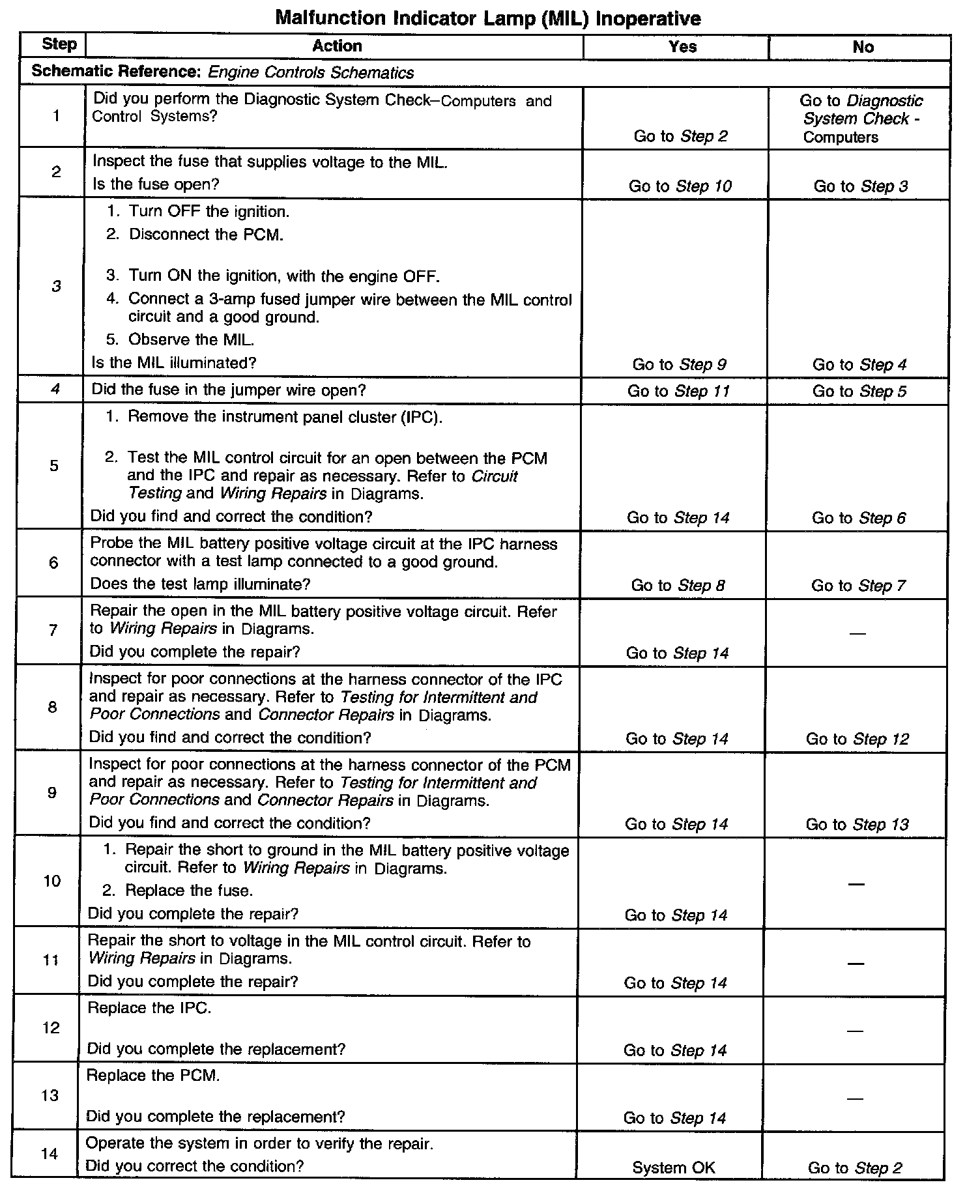 3. This step determines if the condition is with the MIL control circuit or the PCM.