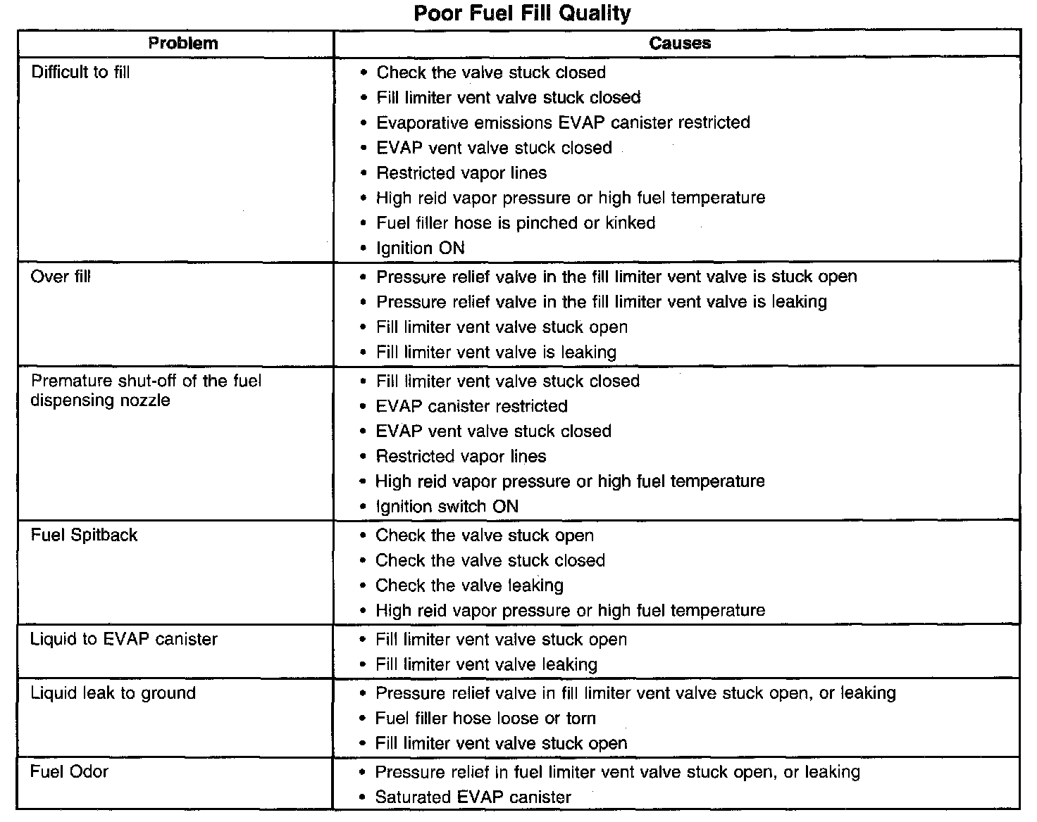 Poor Fuel Fill Quality