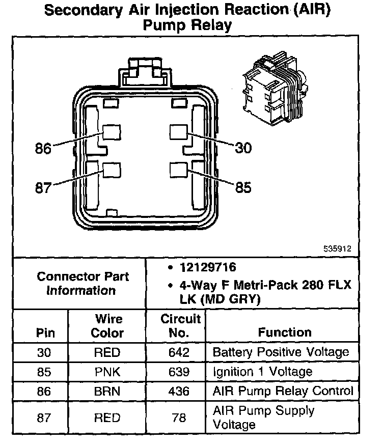 Secondary Air Injection Reaction (AIR) Pump Relay: