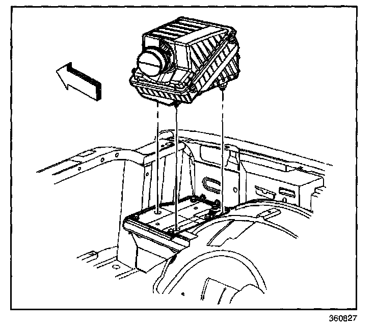 4. Remove the air cleaner assembly by pulling upward until the mounting studs are free from the assembly grommets.