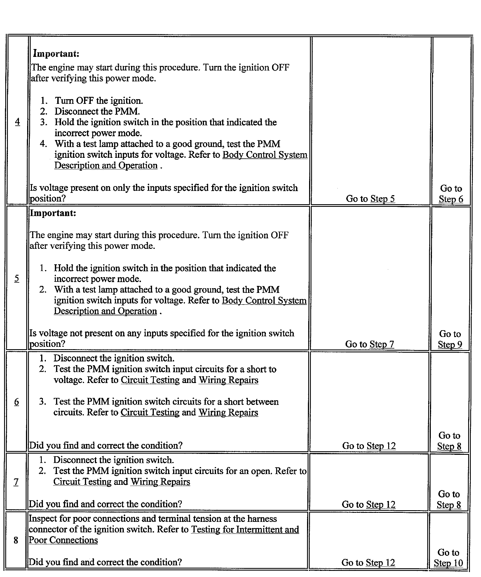 4. This step tests for battery voltage on the signal circuits that are not required.