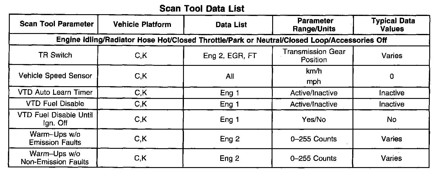 The column labeled Data List indicates where a parameter can be located on the scan tool. Refer to the scan tool operating for the exact locations of the data lists. The following is a description of each term listed:
