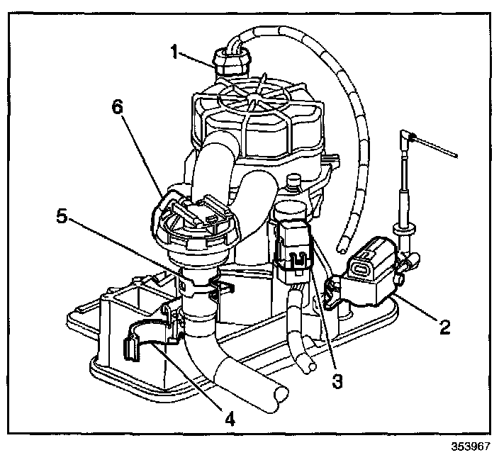 REMOVAL PROCEDURE1. Release the clamp (4) securing the AIR hose to the AIR pump assembly base.