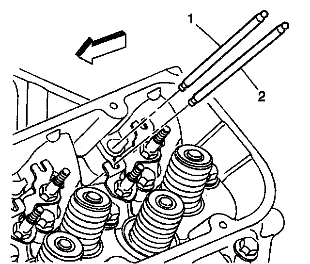 Important: The exhaust valve pushrods (2) are longer than the intake valve pushrods (1).