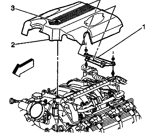 Notice: Use care when installing the engine sight shield to avoid contacting the manifold absolute pressure (MAP) sensor wire harness connector. Loss of engine performance or engine damage may result.
