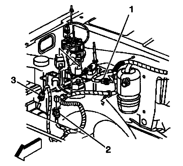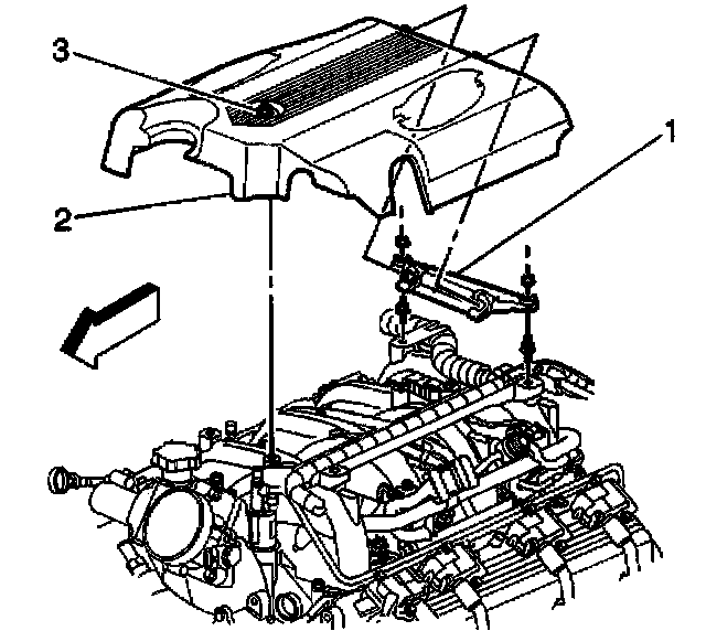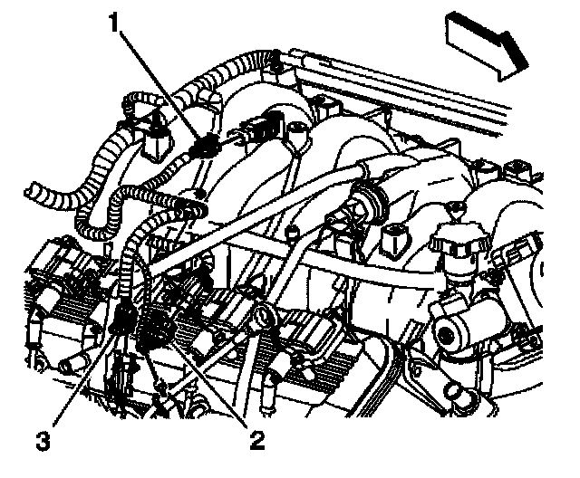3. Loosen the intake manifold sight shield bolt (3).