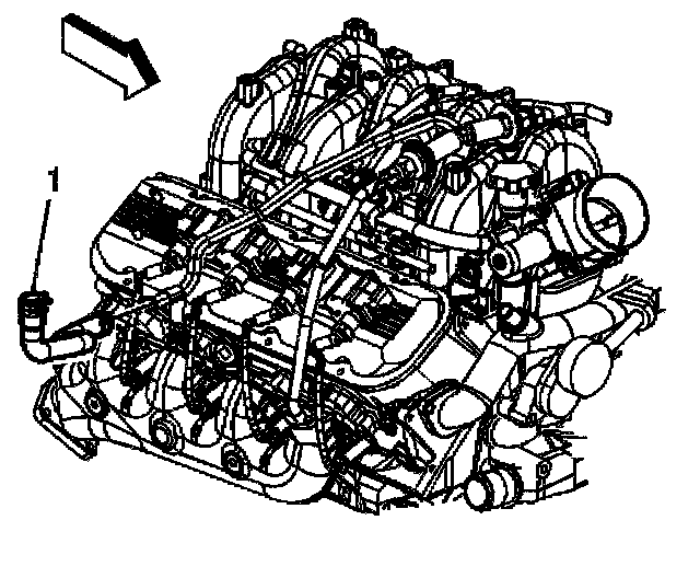 18. Remove the bypass valve vacuum hose (1) from the intake manifold.