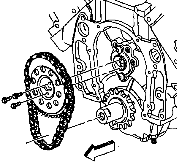Important: The sprocket teeth must mesh with the timing chain in order to prevent damage to the camshaft retainer.
